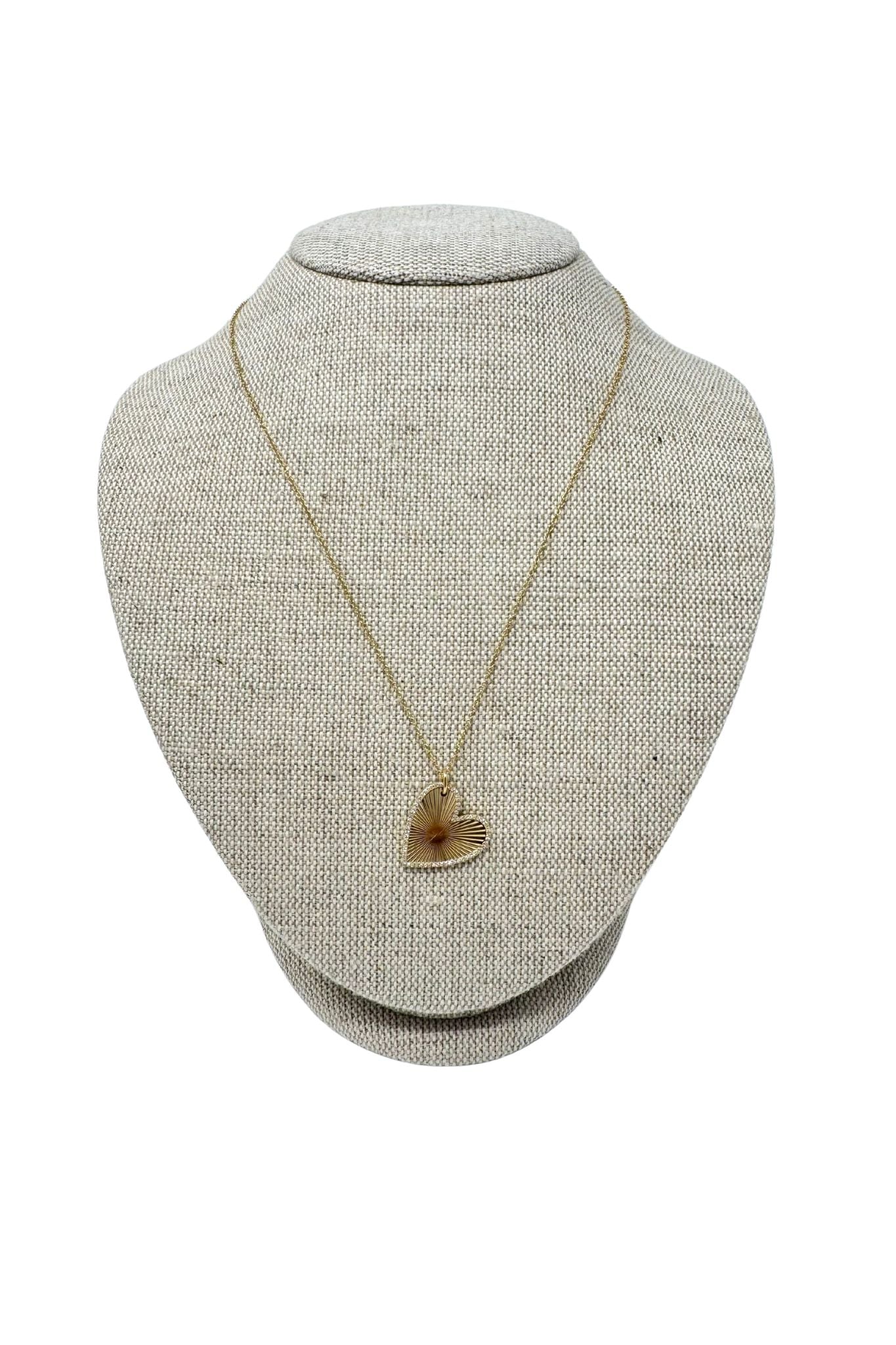 The Jen Collection Necklace - 14K Yellow Gold Diamond Border Fluted Heart Necklace