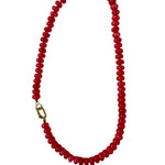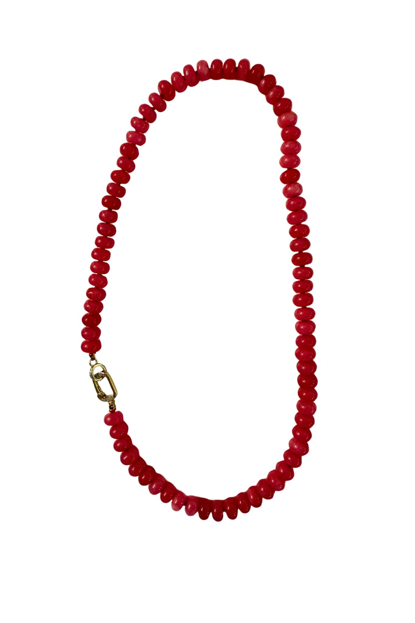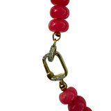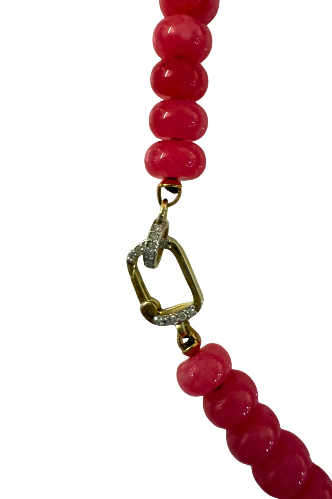 Pink Jade beaded necklace with brass & pave diamond clasp