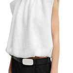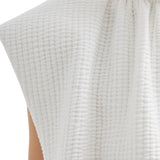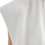 The Quilted Waffle Shirred Neck Top blends casual ease with refined detail. Crafted from Italian quilted cotton seersucker terry, the shirred neckline adds dimension and texture to its relaxed yet structured silhouette. This versatile piece transitions effortlessly from day to night.