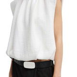 Tibi Quilted Waffle Shirred Neck Top