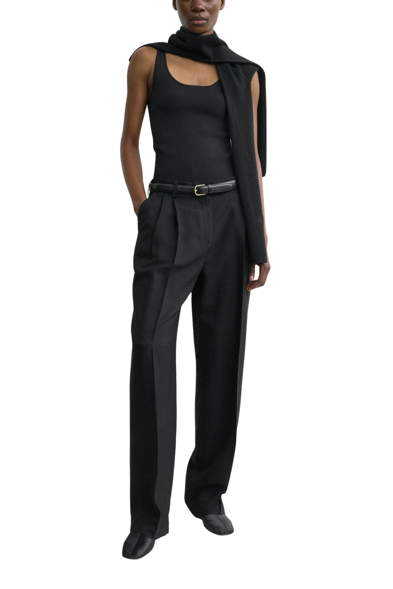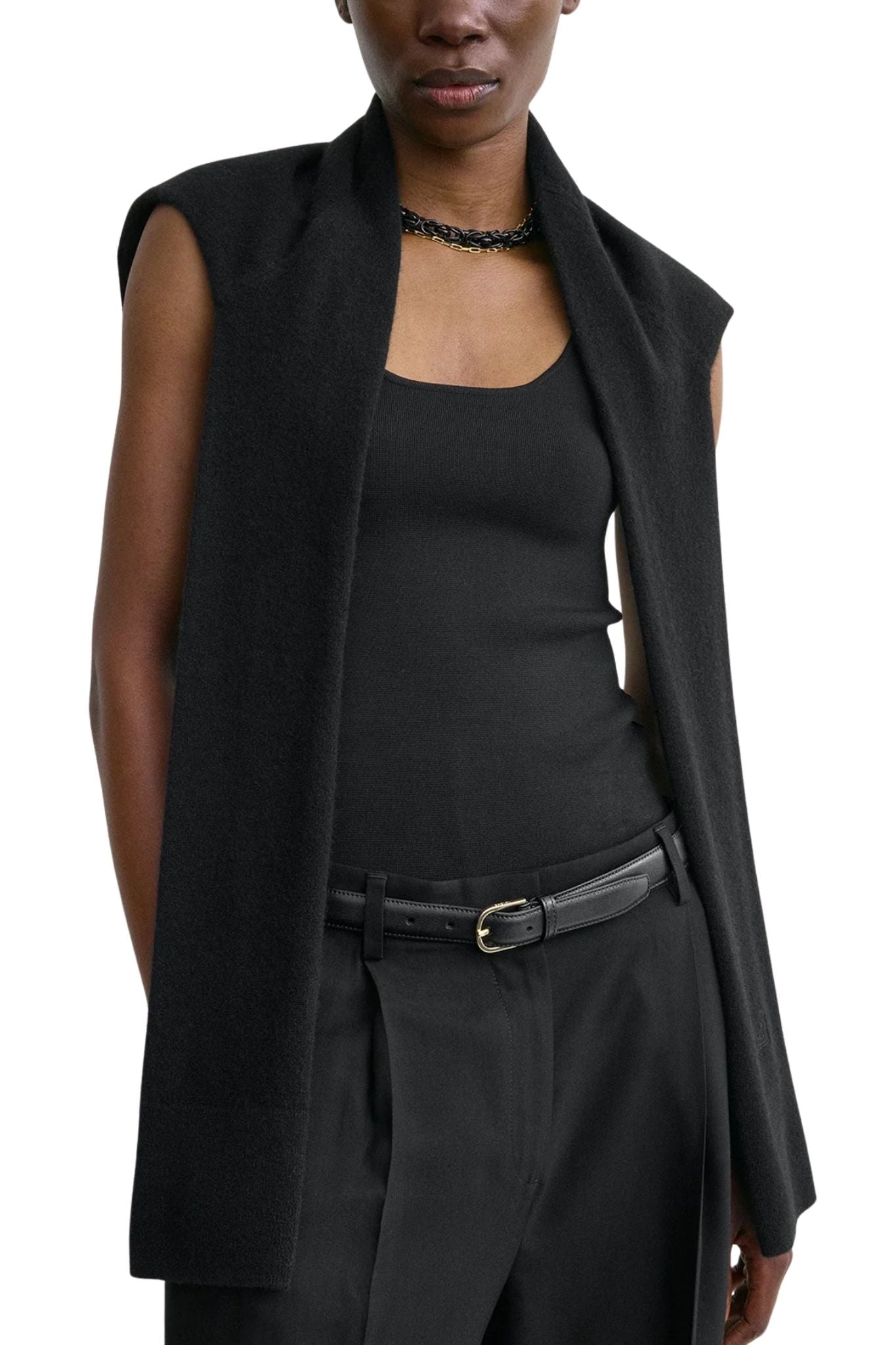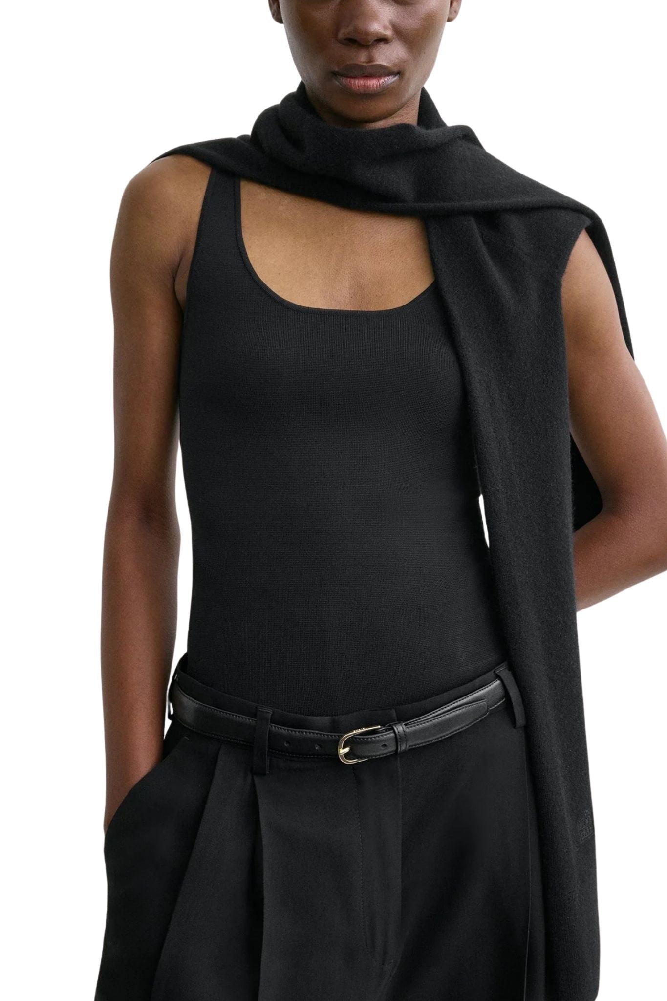Designed to mimic a sweater thrown over the shoulders, this scarf has faux sleeves that can be left to drape or be artfully tied at the chest. It is knitted from soft and warm cashmere with gently ribbed edges.