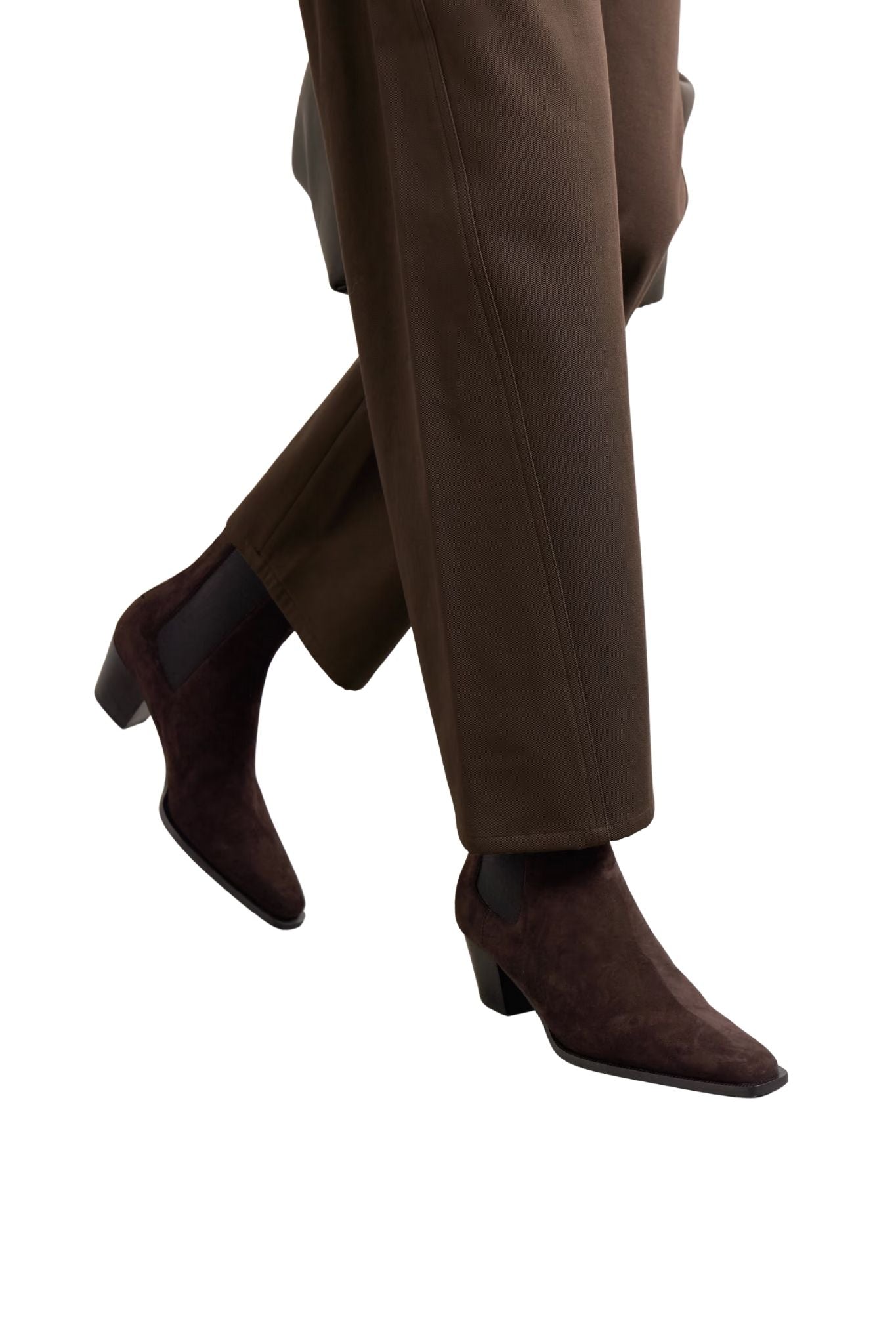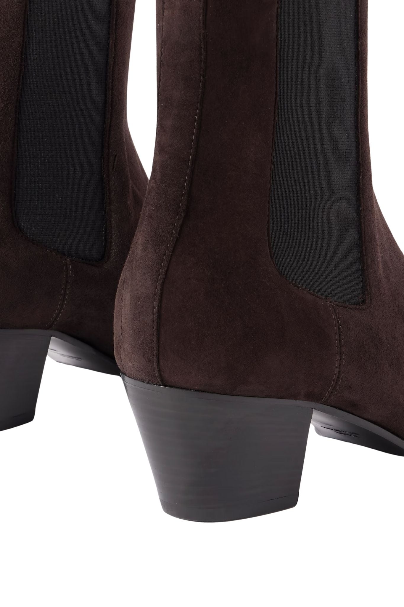 TOTEME's 'The City' boots fuse elements of classic Western and Chelsea styles. Made from supple suede, they have a squared-off pointed toe and are set on a stacked Cuban heel. The elasticated side panels will ensure you can pull them on with ease.
