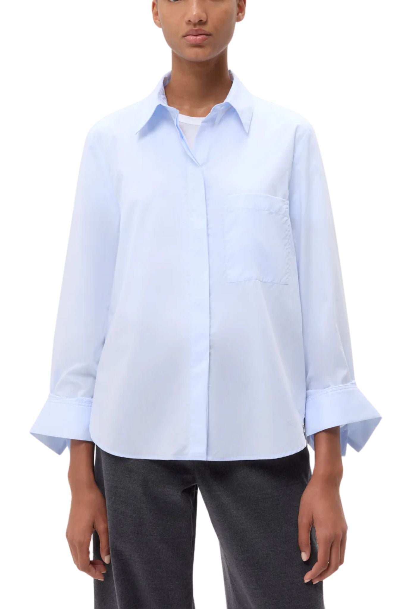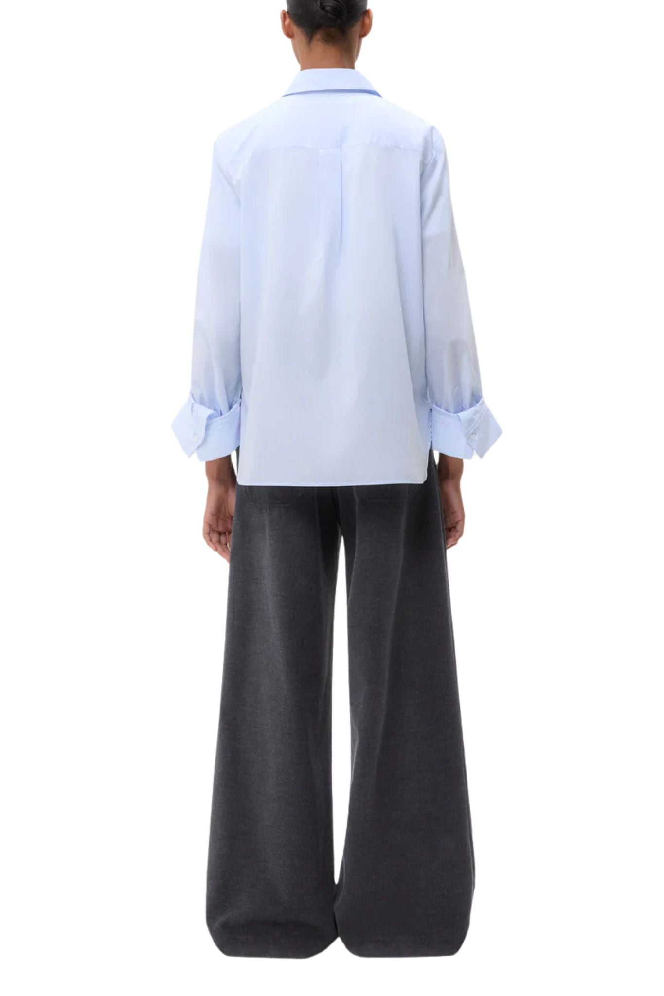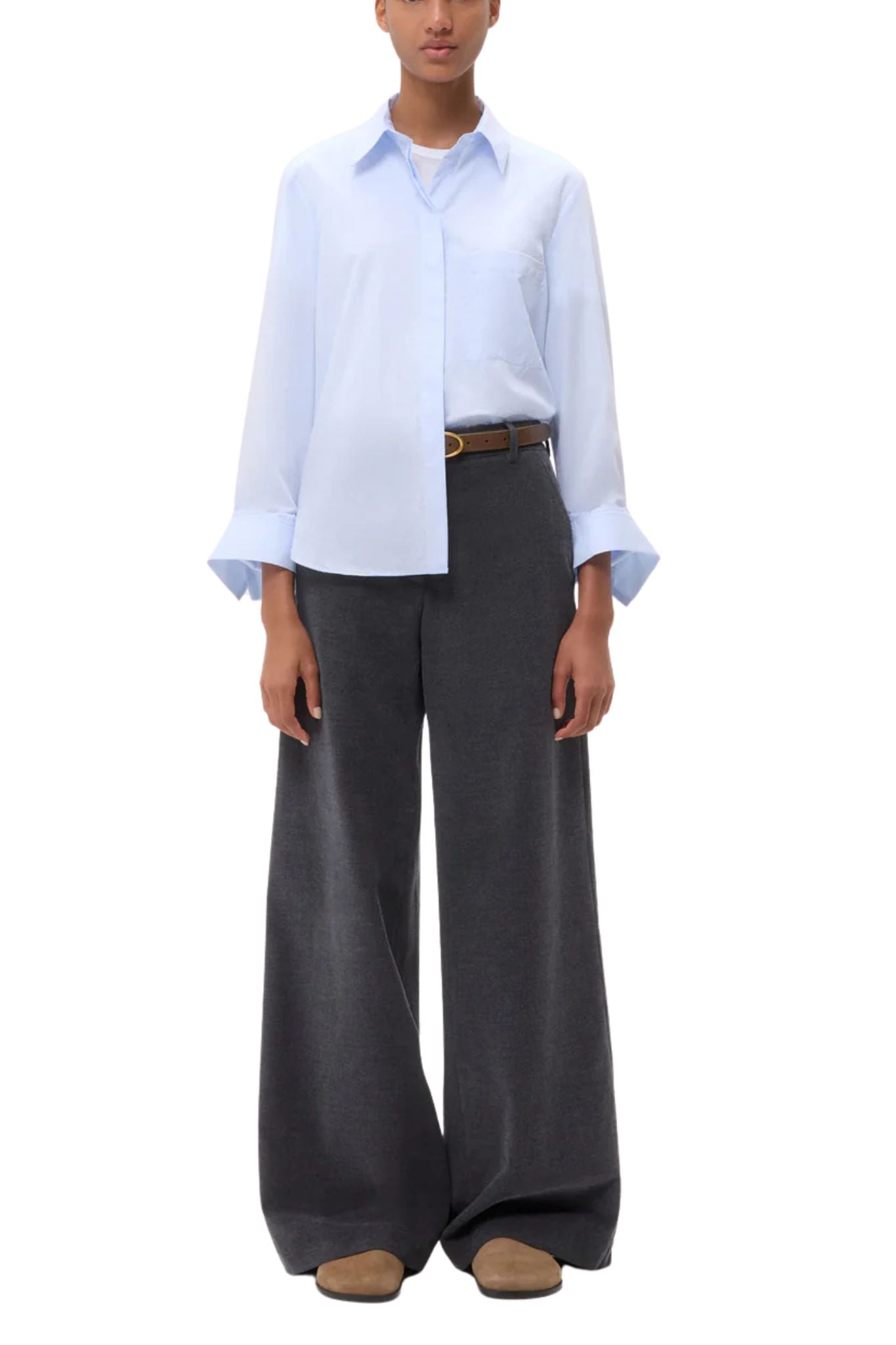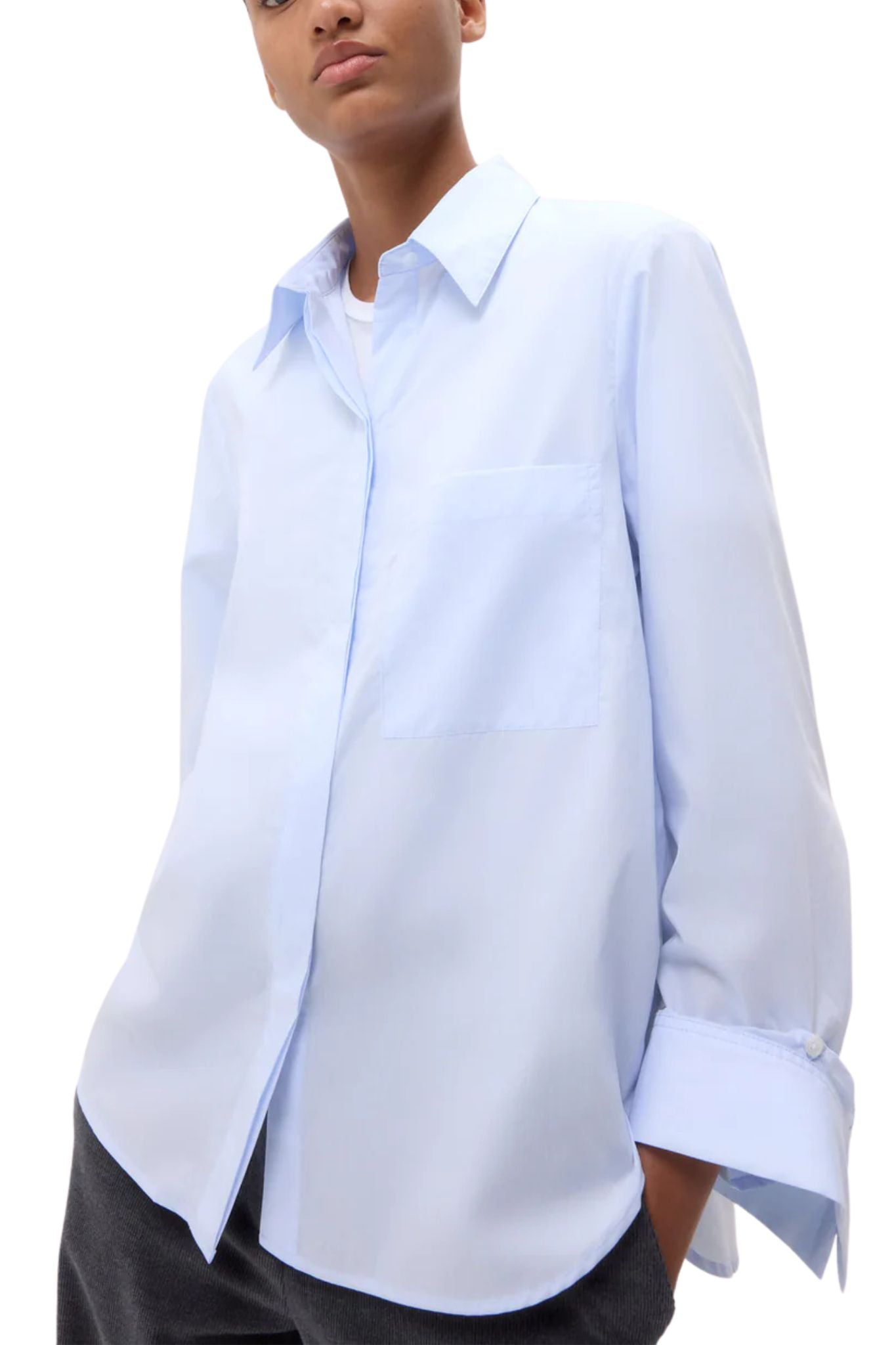 TWP’s signature button down crafted in superfine Italian cotton shirting. The Boyfriend is a relaxed fit complete with a chest patch pocket, concealed placket, curved hem, and staple single roll button cuffs.