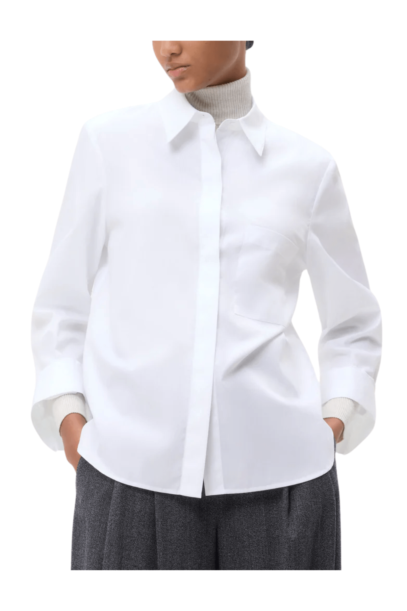 TWP’s signature button down crafted in superfine Italian cotton shirting. The Boyfriend is a relaxed fit complete with a chest patch pocket, concealed placket, curved hem, and staple single roll button cuffs.