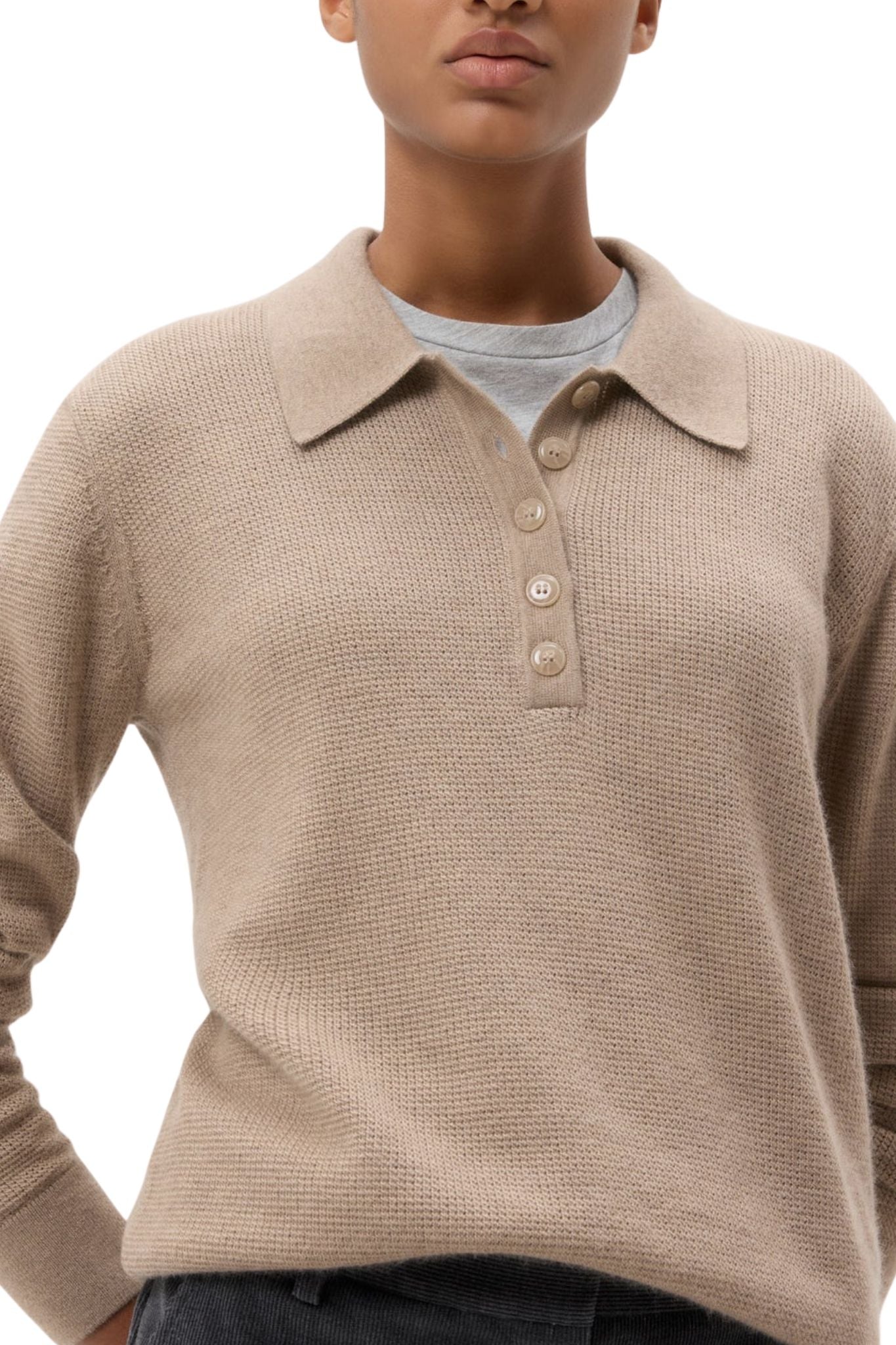 Long sleeve, henley polo knitted in cashmere. The Jorden polo is a lightweight fitted top.