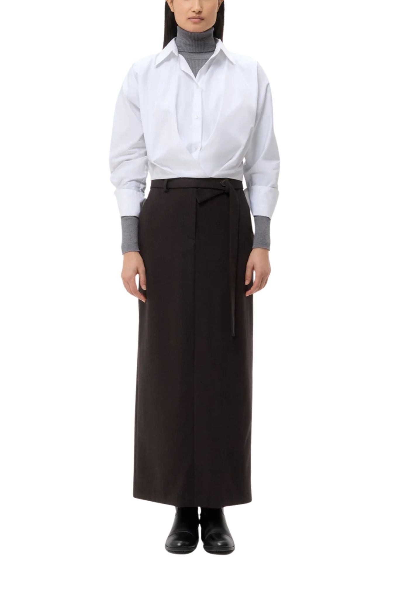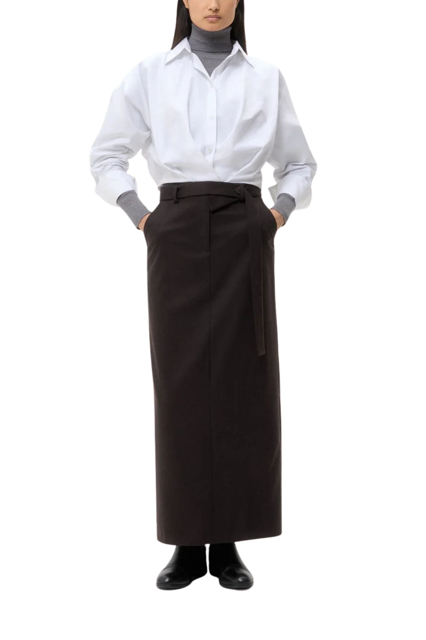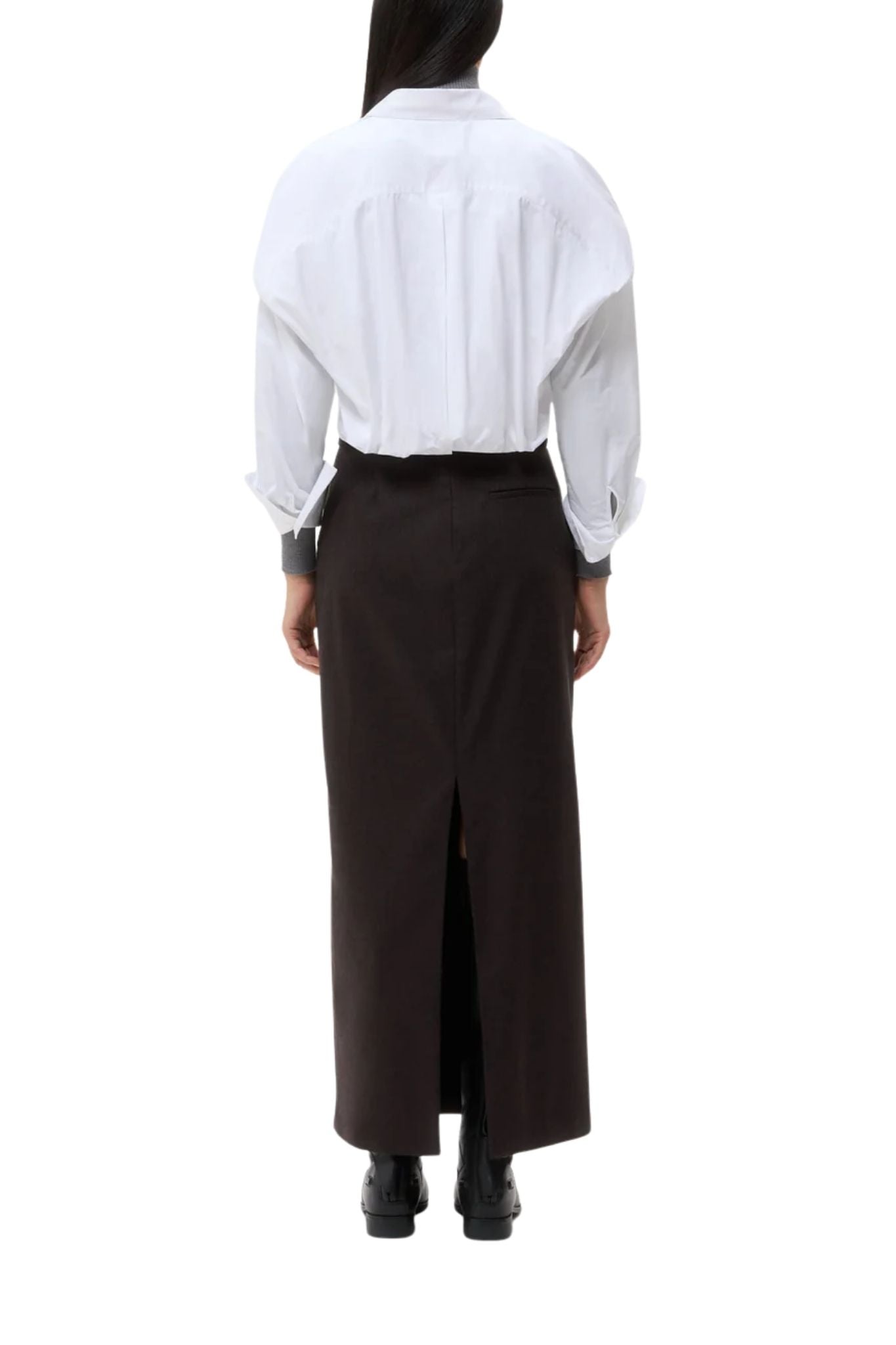 Oversized, cropped button-down shirt in cotton poplin. Relaxed silhouette with a center box pleat at the back with a gathered hem. Complete with exposed button placket, chest patch pocket, spread collar, and single-pick up button cuffs.