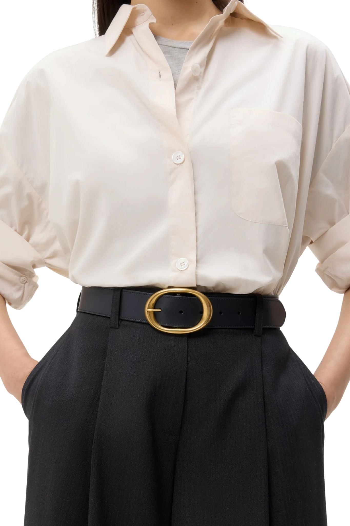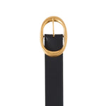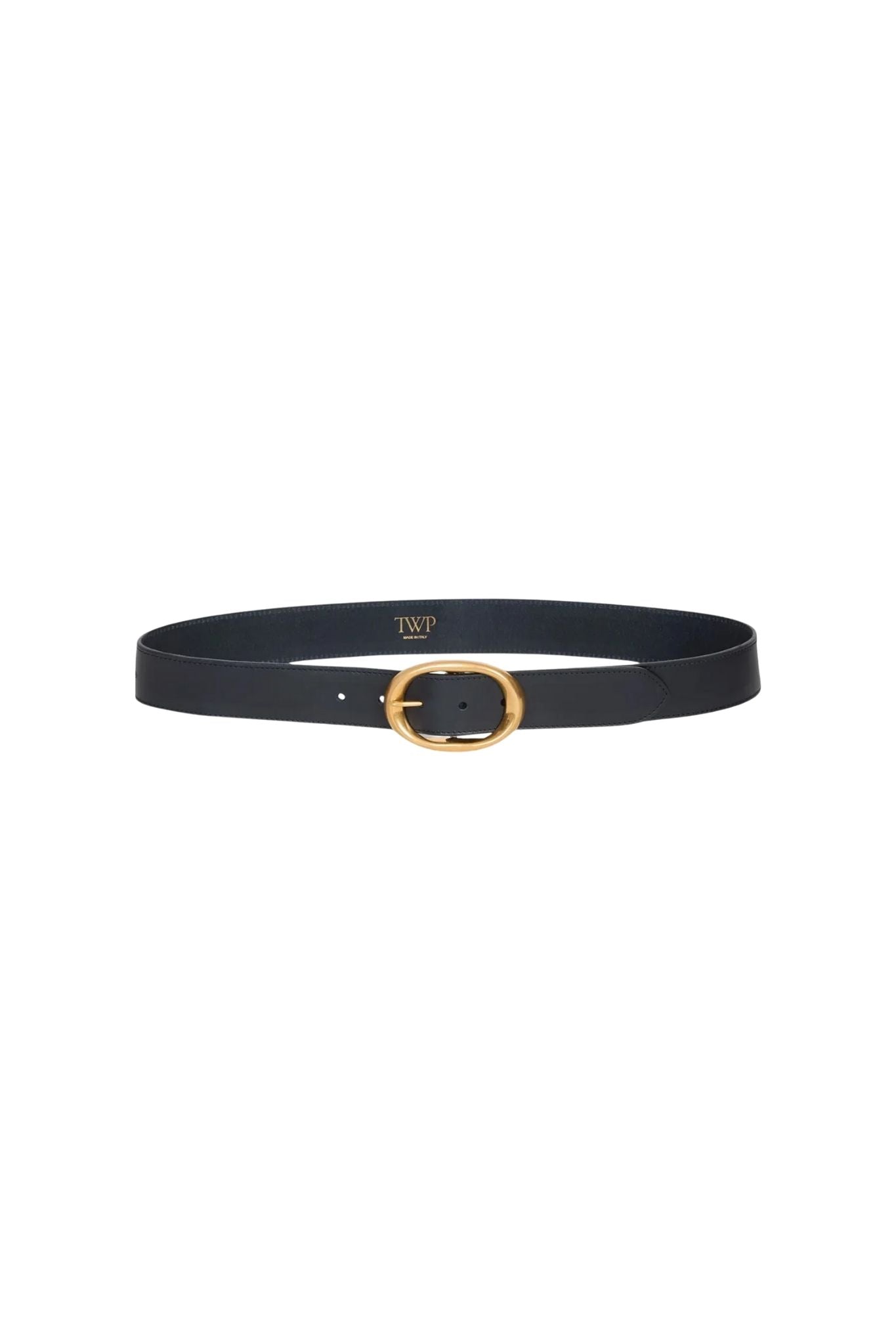 Wide belt in luxe Spanish cowhide leather that burnishes and softens over time. The Wide belt has a strap that will contour to the natural shape of your body with use. Accented with a custom molded brass buckle, coated with an antique gold finish. Made in Italy.