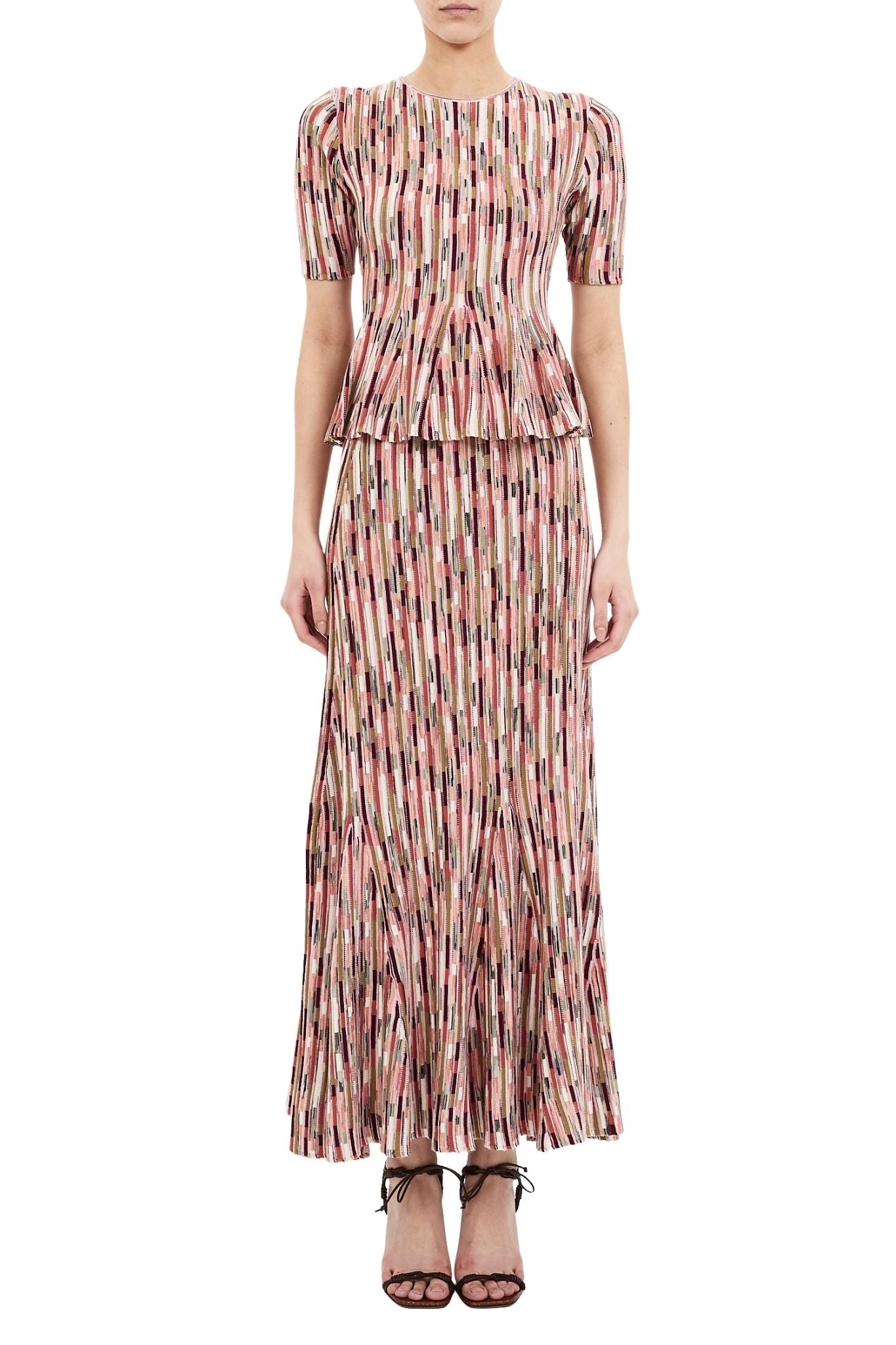 This easy to love top is a fun multicolored knit that features a slim fit that transforms into a subtle peplum hem that makes this easy to wear. Wear with the matching Marceline skirt for a matching outfit or on its own with denim or a trouser. The multicolor pattern makes this easy to pair with anything.