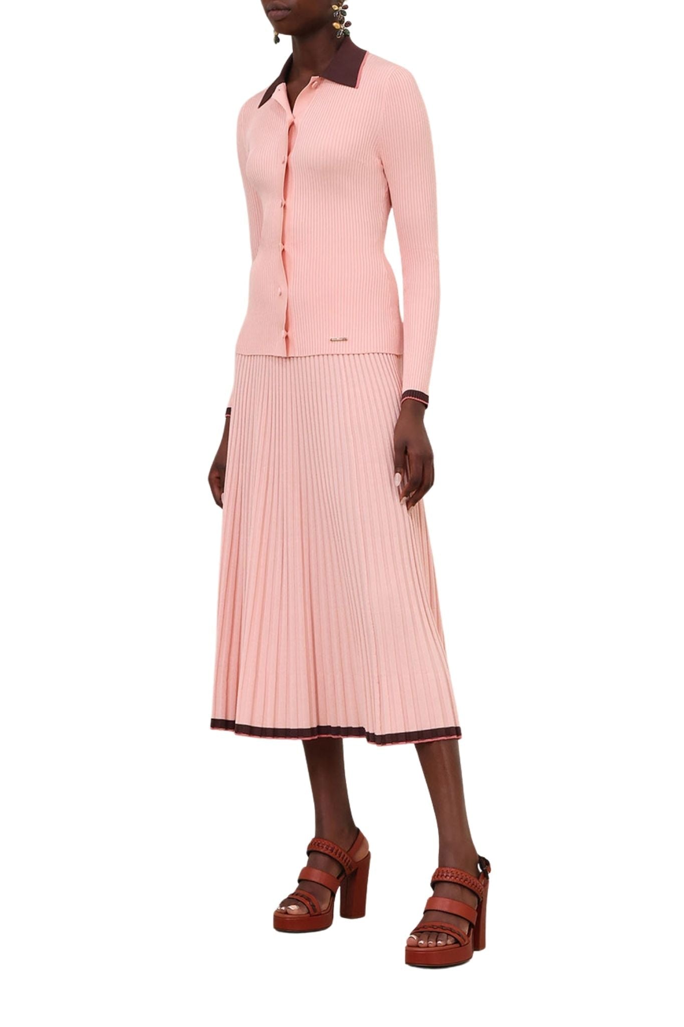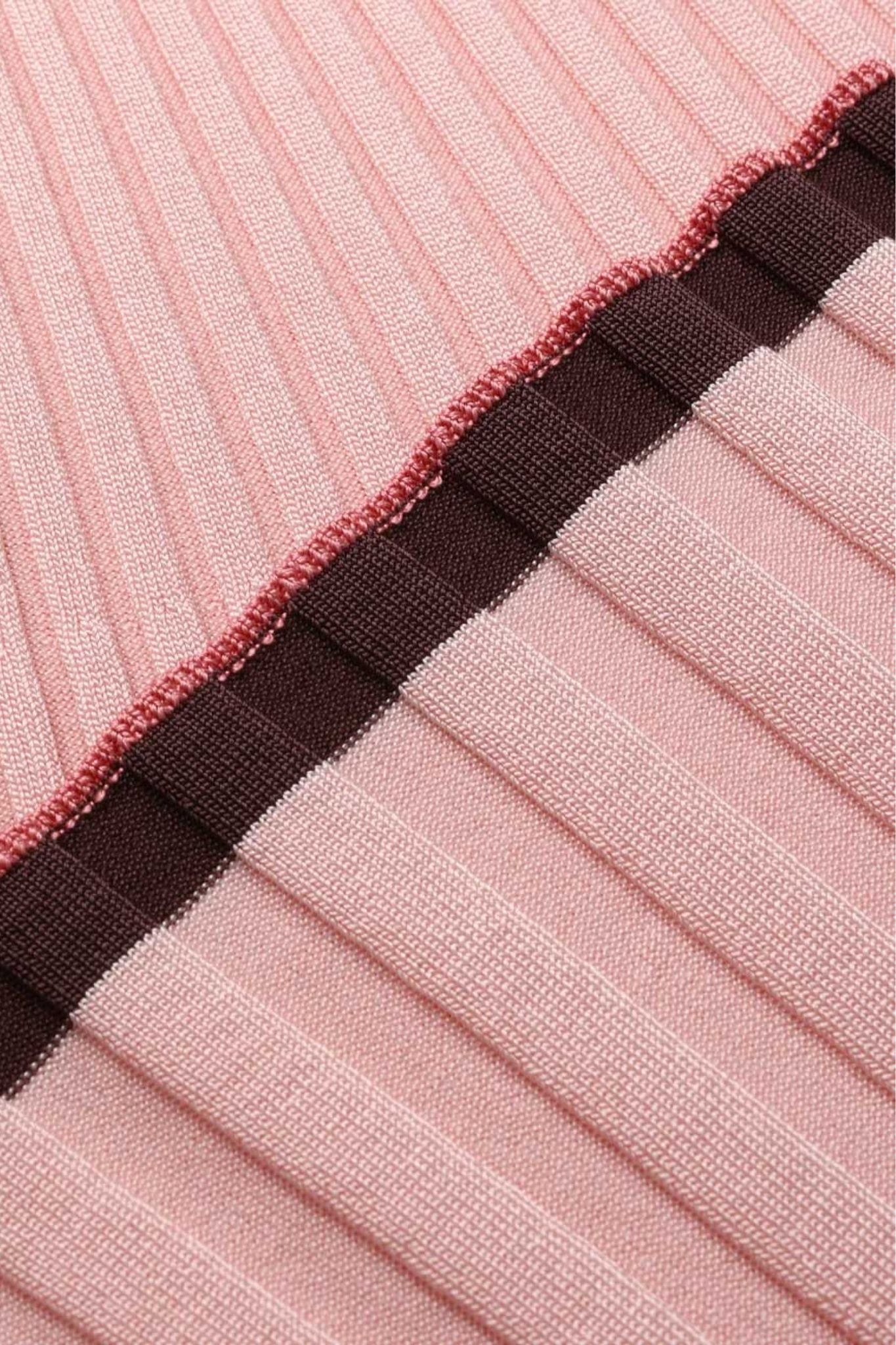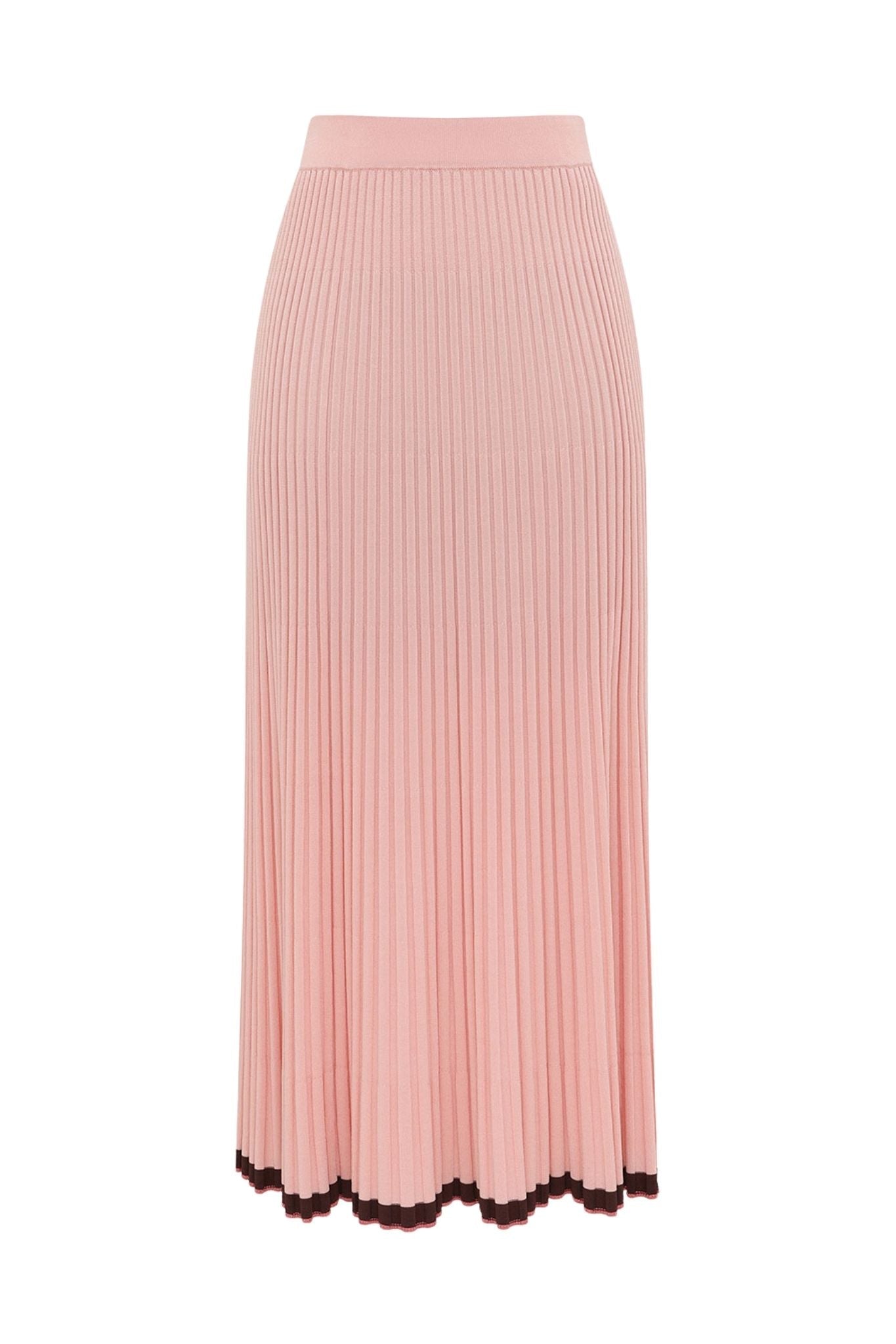 The Contrast Rib Midi Skirt in Soft Pink Multi from our Spring 2026 Collection, Kindred Spirit. A knit midi skirt featuring a thick elasticated waistband and a soft A-line silhouette.